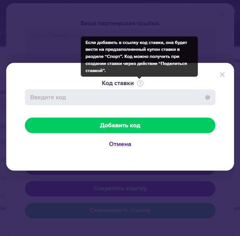 Также вы можете встроить код ставки напрямую в свою реферальную ссылку. Этот способ идеально подходит для привлечения новых игроков.